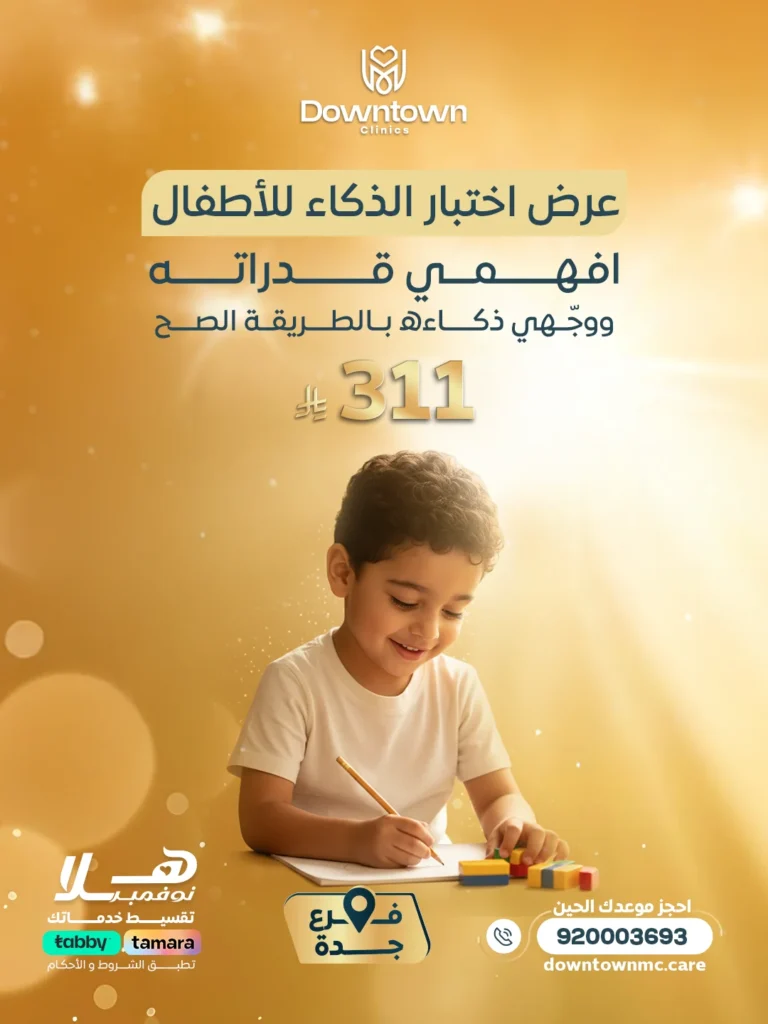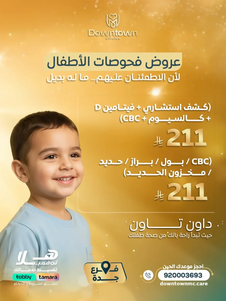 باقة فحص سلامة الطفل (كشف استشاري - فيتامين D - صورة دم كاملة - فحص الكالسيوم) 211 ريال